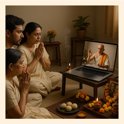 Book your E-puja with 99Pandit! We offer hassle-free and sacred online puja services. Schedule your Vedic rituals with our experienced pandits from anywhere in the world. Just click a link and get your puja done at your doorstep with expert pandits. Take advantage of customized ceremonies and seamless online booking.