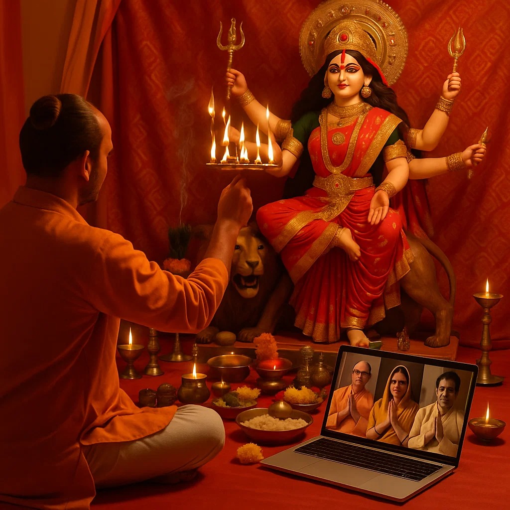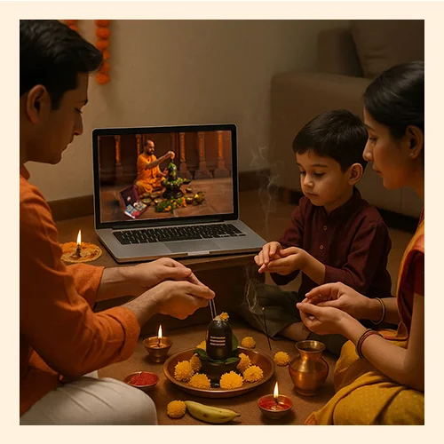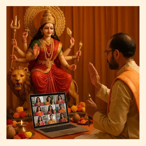 99Pandit is an online puja platform that brings the power of traditional rituals directly to your doorstep. With our E-puja services, you can be part of sacred ceremonies from your home, guided by experienced pandits through live video sessions. Our pandits are highly trained from prestigious Vedic universities. 99Pandit guarantees authentic, accessible, and convenient puja experience.