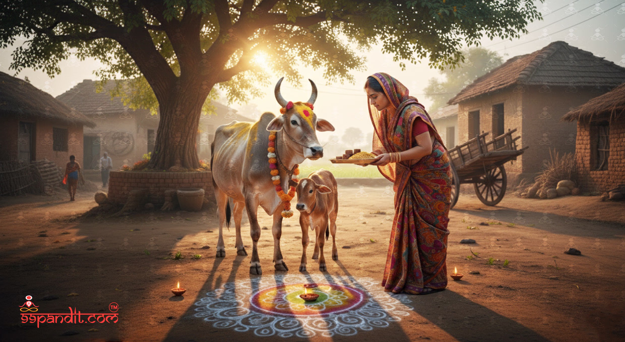 Putting our love and our abilities of devotion into the cow and calf on this day brings happiness, peace, and prosperity to the home.