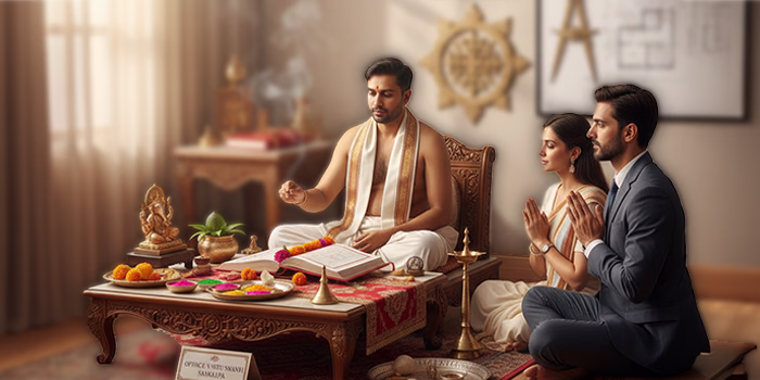 Authentic spiritual instructions for business growth, emphasis on Chopra puja, new account sanctification, and Vastu shastra blessings performed with Vedic authenticity to assure a profitable financial future.