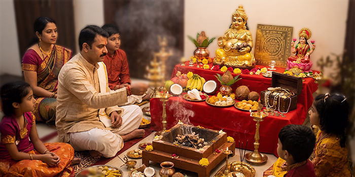 Being dedicated to Lord Kuber, the puja serves spiritual alignment that balances one’s personal energy with the universal flow of wealth and abundance.