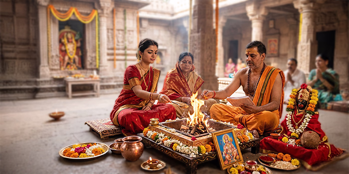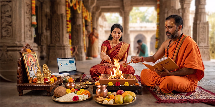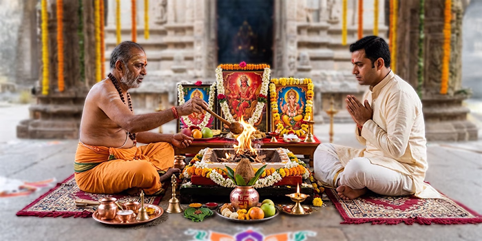 Authentic Hindu pujas and sacred rituals performed by experienced Pandits with complete Vedic procedures, ensuring spiritual purity, divine blessings, and peaceful, auspicious outcomes.